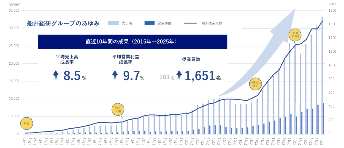 | 1981年 | 経営コンサルタントという仕事を世の中に認められることを目指すため、 上場準備を始める。 また、舩井幸雄一人に頼る体制を改めるため、業務の大半を社員に委譲し始める。 |