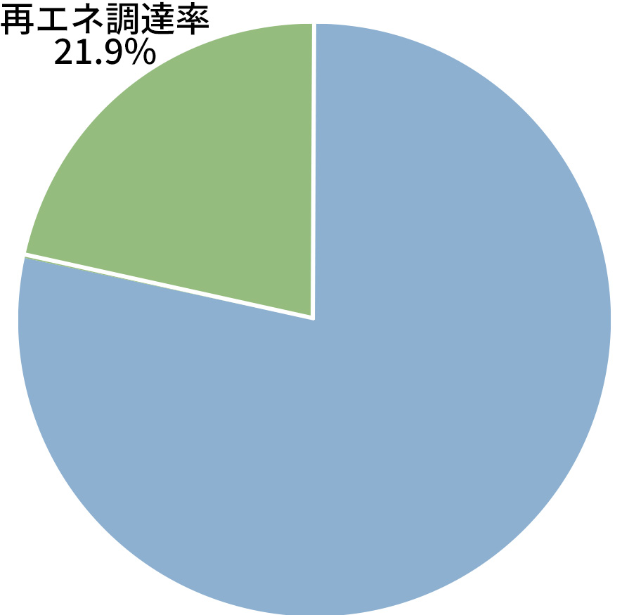 2030年の目標達成に向け、各事業所の再エネ電力プランへの切り替えを進めており、総使用電力量における再生可能エネルギー調達比率は以下のように推移しています。 (2021年度:約13.4%、2022年度:22.8%、2023年度:24.1%、2024年度:21.9%)